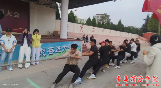 旌旗猎猎,喊声震天。在校庆33周年的喜庆氛围中,我院2025年10月16日下午在北校操场参加拉拔河活动。我院拔河队队员们身体后倾成一条笔直的斜线,每一只手都紧紧攥住粗麻绳,仿佛与绳子融为一体。随着裁判一声哨响,队员们齐声喊出“一二、一二”的号子,号声铿锵有力,脚步稳如磐石,麻绳上的红线在两队之间来回拉锯,最终缓缓向我院队伍方向移动。