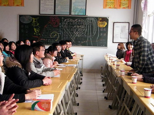 2月24日,日本RAC海外研修访华团团长虾名大典等九名成员在我校99级经贸日语专业毕业生李文昕的陪同下访问我校。