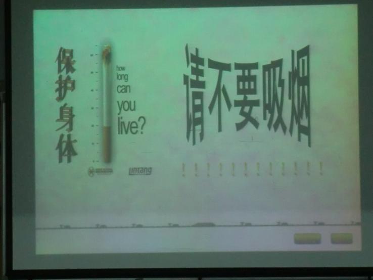 蒋院长首先讲述了吸烟对本人、他人身体健康危害及对周围环境的影响,并从较为专业的角度介绍了戒烟的方法、过程和注意事项,用身边发生的实例生动地展现了戒烟工作开展的必要性。孔伟老师利用幻灯片,通过名言警句的形式让同学们充分的认识到了烟草的危害,形成了同学们对待烟草的正确态度,作为新一代大学生,要远离烟草,保持阳光、活泼、健康向上的新风貌。
