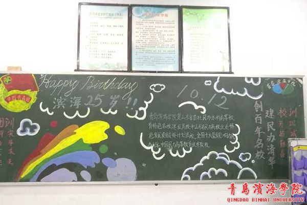此次板报展示活动将“迎校庆”和“班级文化建设”结合起来,不仅创新了活动形式,带动了我院各班级德育工作的顺利开展,提升了学院的形象,而且也为我校二十五年华诞献礼,表达了我院学生对滨海的热爱。25年来,我校踏出了一条独具特色的民办教育之路,在这个方向的指引下,滨海师生攻坚克难,勇往直前,才有了今天让滨海人引以为傲的青岛滨海学院。在二十五周年校庆来临之际,让我们一起为校庆生,用实际行动共筑美好未来。