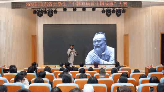 2025年11月29日,由山东省教育厅指导、多部门联合主办的2025年山东省大学生“中韩双语讲中国故事”大赛在青岛滨海学院珠山大饭店隆重举行。我校朝鲜语专业23级2班学生胡浩男凭借出色的中韩双语表达能力、扎实的文化素养和沉稳的现场表现,在众多参赛选手中脱颖而出,荣获中国学生组第一名。其指导教师白和林老师因在指导学生过程中的卓越贡献,荣获“优秀指导教师奖”。