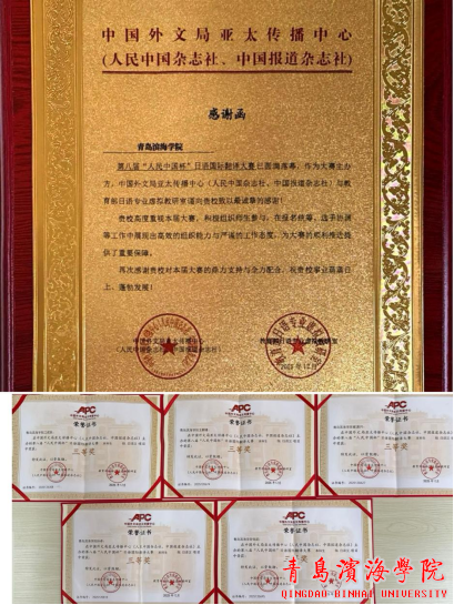 近日,第八届“人民中国杯”日语国际翻译大赛圆满落幕。中国外文局亚太传播中心(人民中国杂志社、中国报道杂志社)向青岛滨海学院发来感谢函,肯定学校在大赛统筹、选手协调等工作中的高效组织与严谨态度,为赛事顺利推进提供了重要保障。